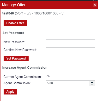 يلاحظ! بعد إنشاء عرض الأسعار، يمكن تعديل "كلمة المرور" و"معلمات لجنة الوكالة" فقط.