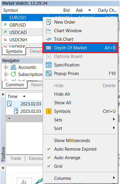 3.5 كيفية وضع أمر باستخدام عمق السوق في MT5