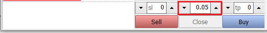 في المربع الأحمر في نافذة معاملة النقر ، أدخل حجم المركز الذي تريد تداوله ، ثم انقر فوق بيع أو شراء لشراء أو بيع مركز التداول المحدد بأحدث سعر حالي.