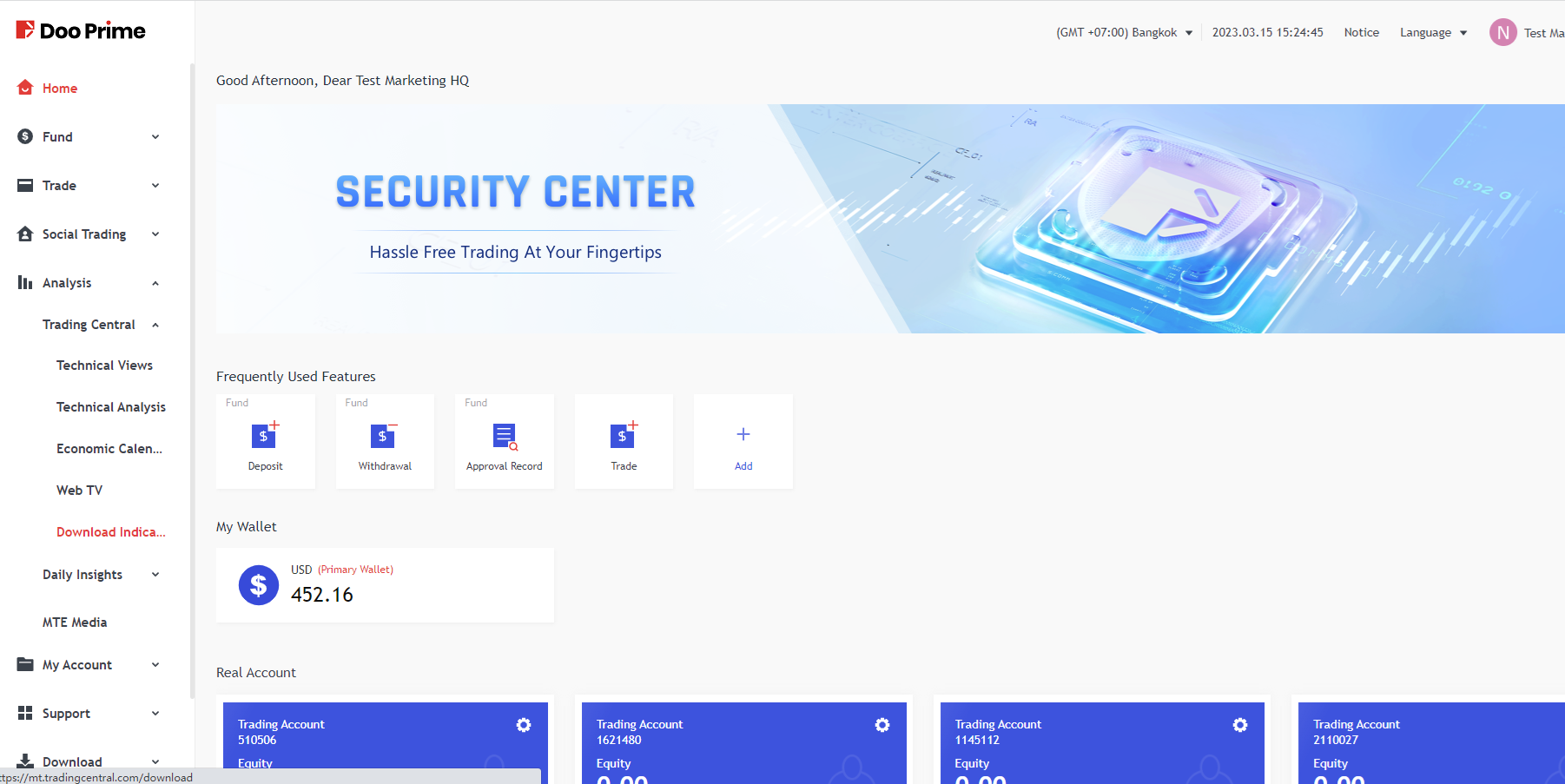 1. Primero, inicie sesión en Doo Prime User Center, luego haga clic en "Análisis" en la barra de menú de la izquierda y seleccione "Descargar indicadores". Verifique la barra de menú inferior en este punto, el indicador de Trading Central se ha descargado.