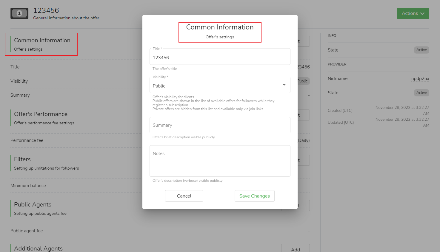 La fuente de la señal puede completar el [Código de identificación] después de hacer clic en [Agregar], configurar la [Validez] del enlace de unión y luego completar la cuenta comercial de MetaTrader del presentador y hacer clic en [Crear]. Tenga en cuenta: la cuenta comercial de MetaTrader de [Promoción de introducción] aquí se puede completar con éxito solo después de que se establezca el porcentaje de la tarifa de promoción de introducción.