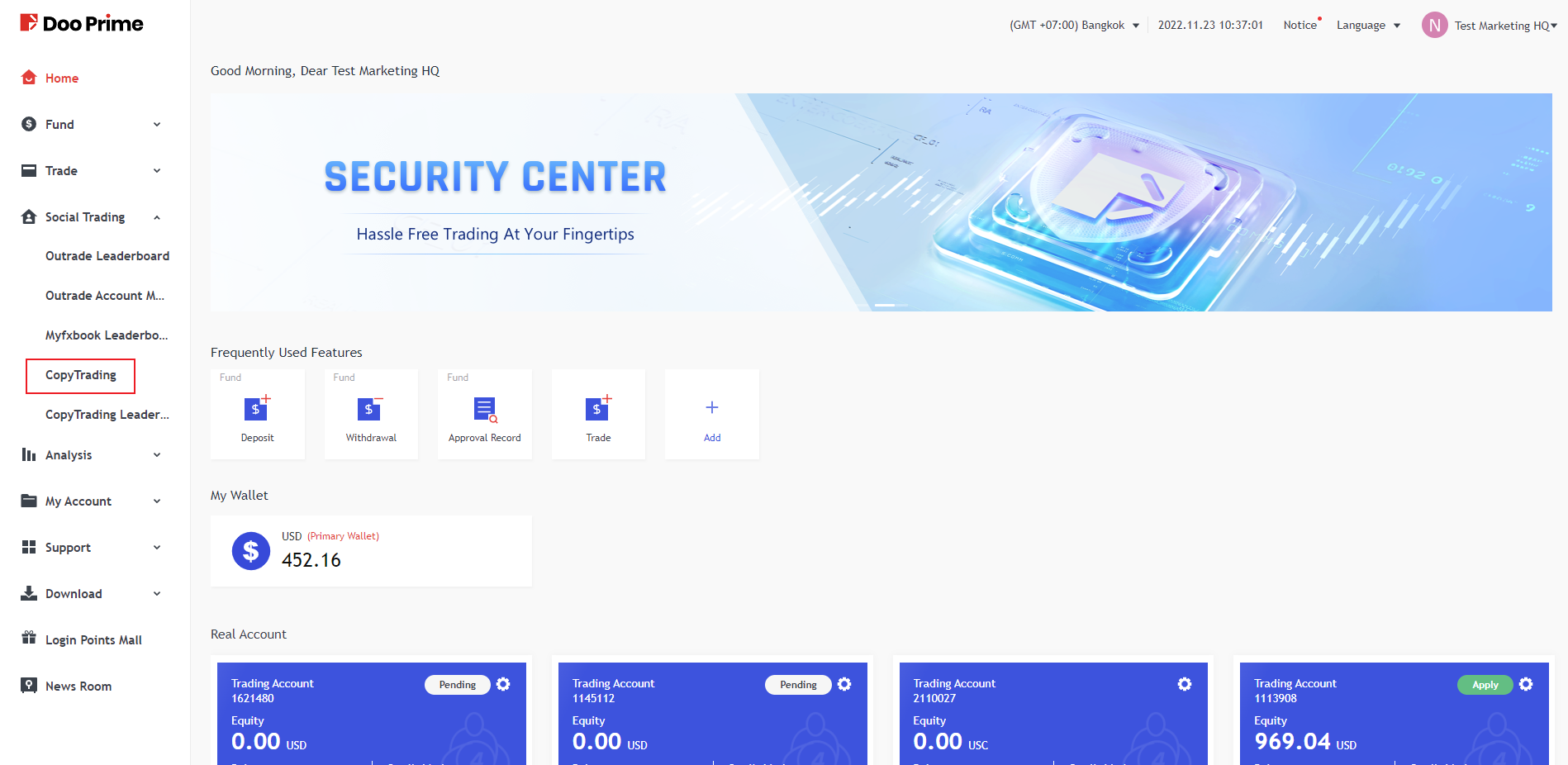 1. Puede optar por iniciar sesión en CopyTrading a través de la barra de menú izquierda del Centro de usuarios de Doo Prime.