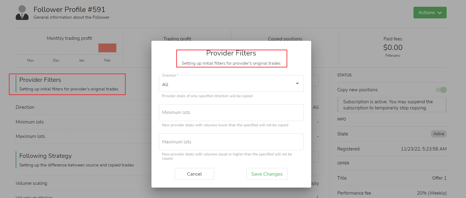 최소 로트 크기:추종자는 볼륨을 따르기 위해 최소 로트 크기를 선택할 수 있습니다. 시그널 소스의 거래량이 설정된 거래량보다 적을 경우 추종하지 않습니다.