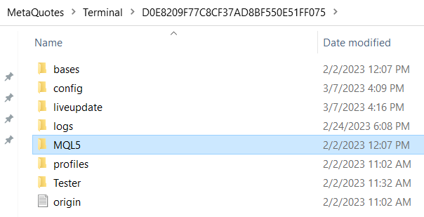 2. 데이터 폴더에서 MQL5 파일을 연 후 대상 폴더를 선택합니다.
