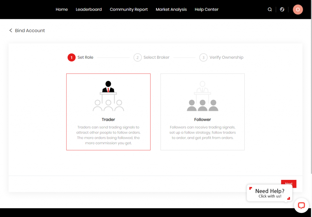 Faça login no seu Doo Prime User Center, clique em "Community Trading" no lado esquerdo da página inicial, clique em "Outrade Account Management", clique em Add Account no lado direito da página, selecione a função "Trader" ou "Follower" , e finalmente vincular a conta que é Can.