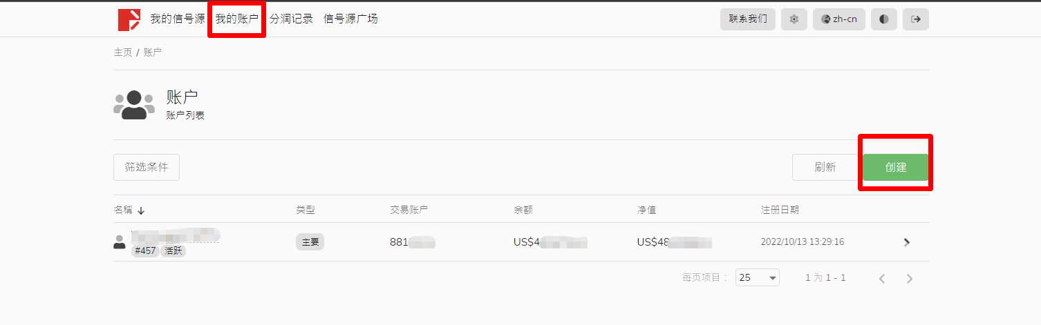 3. 新的交易账户可以用来发布新的信号源,也可以选择成为跟随者,或者用来接收绩效费。