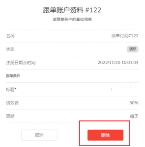 然后点击页面右侧的【删除】,便可删除此跟单条件。
