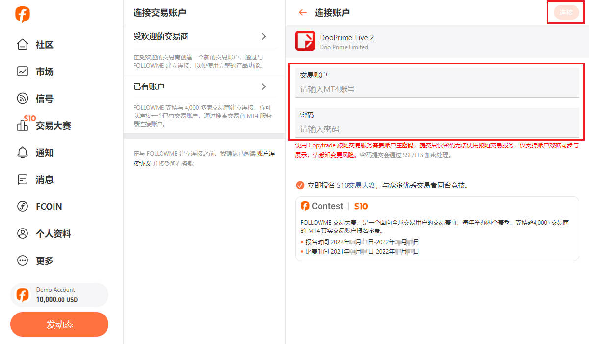 如何通过 FOLLOWME 连接 D Prime 交易账户?