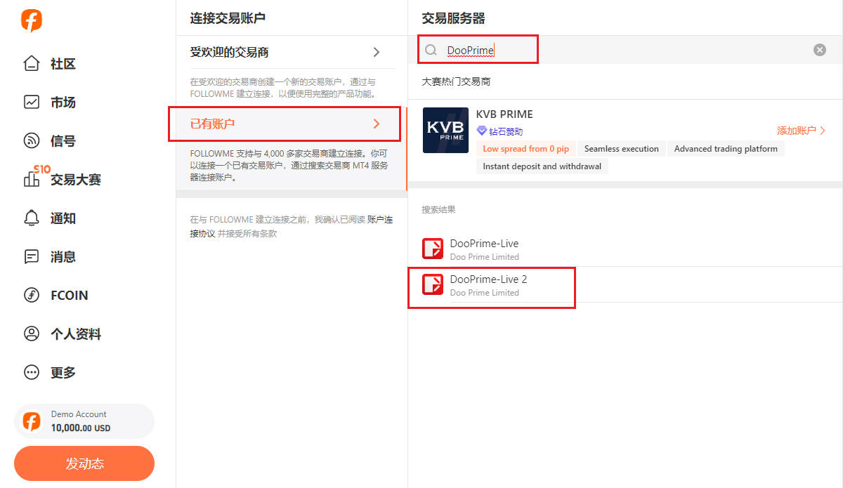 如何透過FOLLOWME 連接D Prime 交易帳戶?