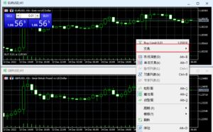 5. 在圖表窗口中新建訂單,在圖表空白處右鍵,點擊【交易】,創建一個新訂單。