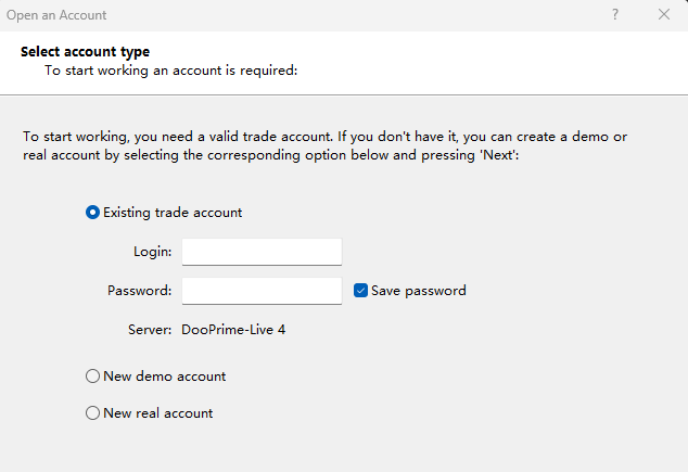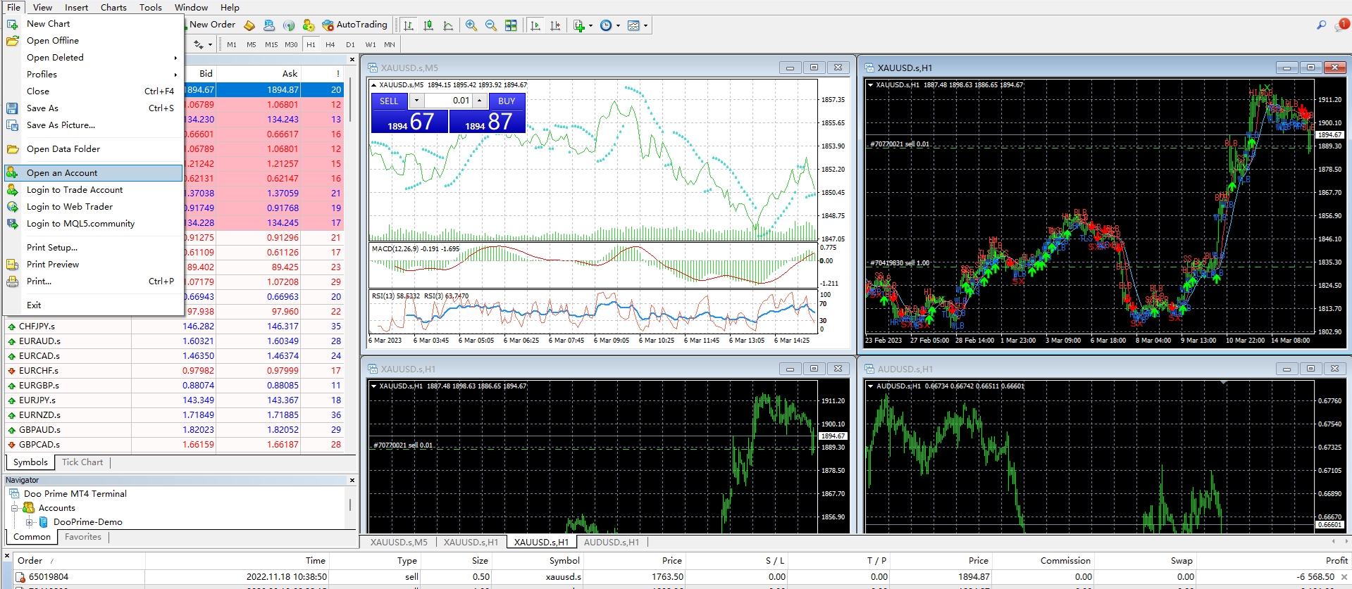 1. Mở ứng dụng khách MT4, nhấp vào "Tệp" ở góc trên bên trái và chọn "Mở tài khoản demo mới".