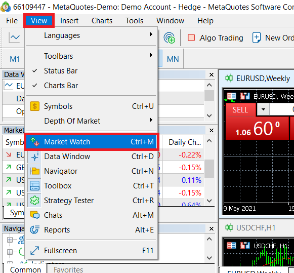 Nếu cửa sổ báo giá thị trường không được hiển thị, trước tiên bạn cần nhấp vào [Xem] trên thanh menu, sau đó chọn [Báo giá thị trường]
